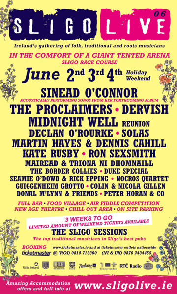 Against the magnificent sun-soaked backdrop of Ben Bulben mountain, festival-goers enjoyed top performances from acts ranging from Sinead O'Connor, Kate Rusby and the Proclaimers to Sligo's own Dervish and Midnight Well.
