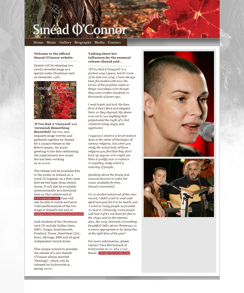 Sinead will be launching a new website and myspace site soon.